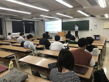 5月31日(火)の自校学習の授業の中で、須藤篤教授(エネルギー物質学科)が「エネルギー、マテリアル、そしてSDGs」というタイトルにて講義を行いました。